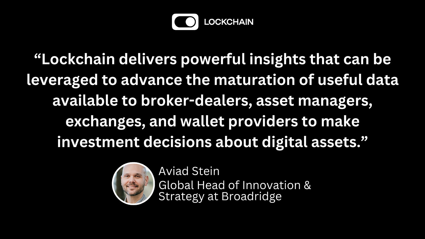 “Lockchain delivers powerful insights that can be leveraged to advance the maturation of useful data available to broker-dealers, asset managers, exchanges, and wallet providers to make investment decisions about digital assets,” explained Aviad Stein, Global Head of Innovation and Strategy at Broadridge. “Their proprietary AI produces reliable and appropriate outputs in a scalable way and helps us continue our lead-first approach in progressing the state of standardization and compliance of digital asset regulations across the globe.”