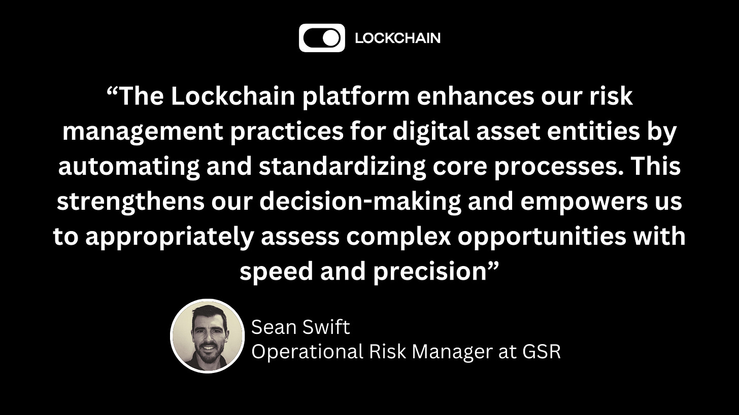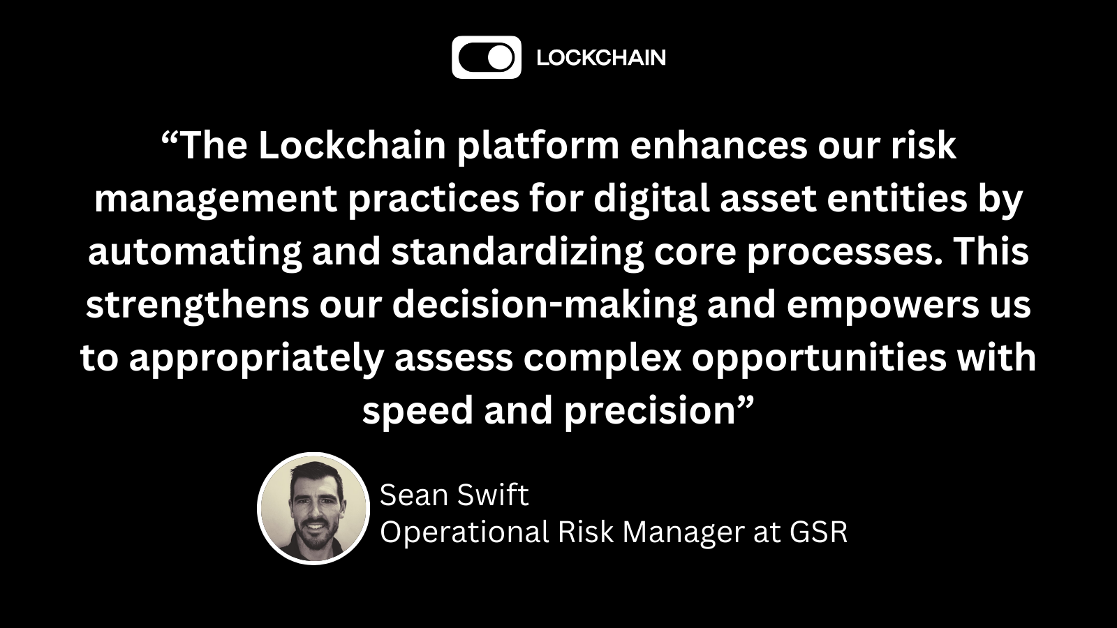 “The Lockchain platform enhances our risk management practices for digital asset entities by automating and standardizing core processes. This strengthens our decision-making and empowers us to appropriately assess complex opportunities with speed and precision,” said Sean Swift, Operational Risk Manager at GSR.